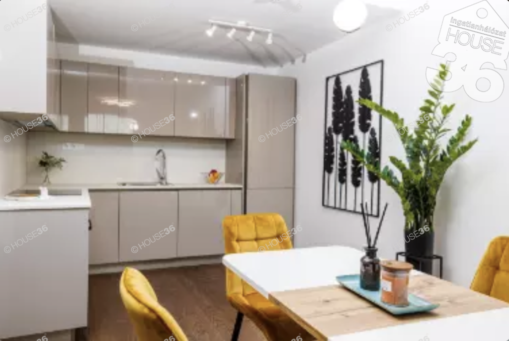 - kész konyhát, beépített konyhabútorral, mosogatótálcával, indukciós főzőlappal, sütővel és központi elszívó berendezéssel