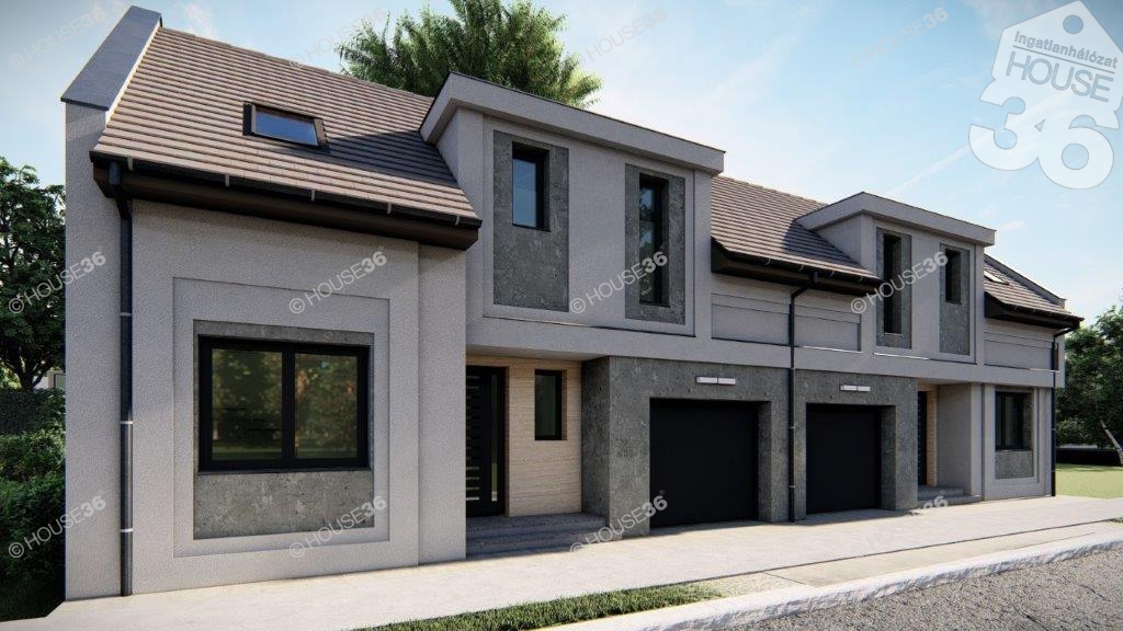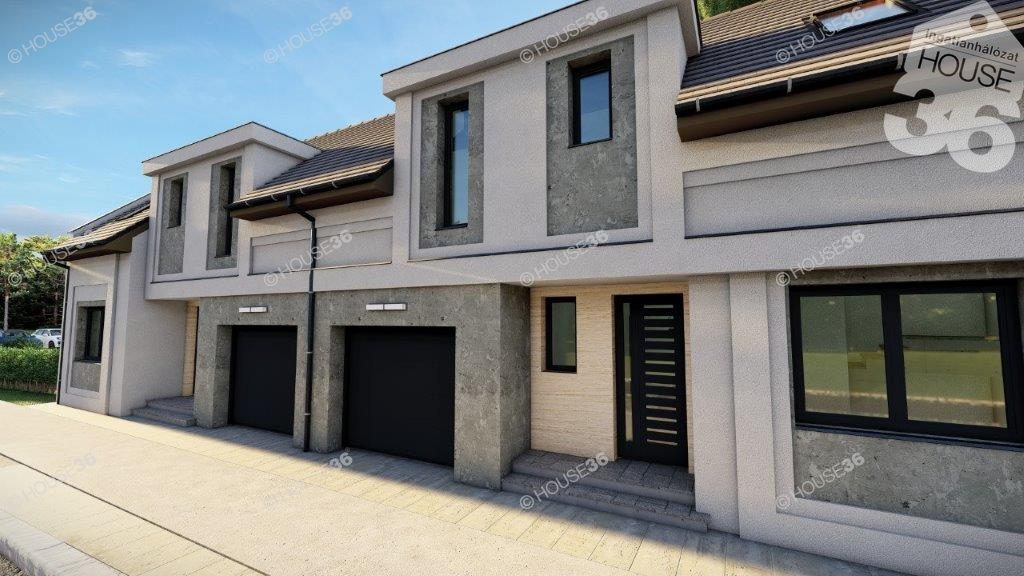 Az összközműves, betonos utcában található, 286 m2-es telekre egy 120 m2-es prémium minőségű 2 szintes ikerházat terveztek.