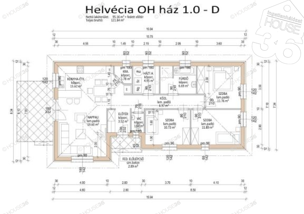 - nappali + 3 szoba