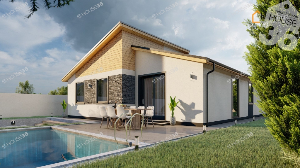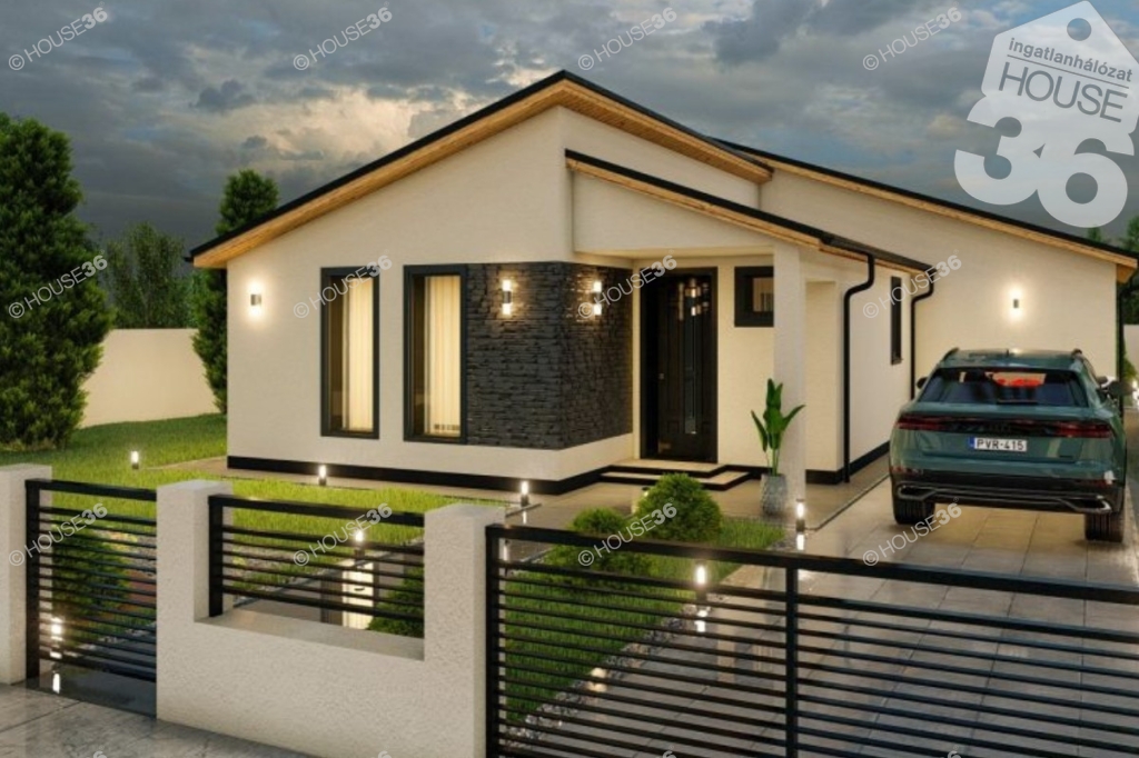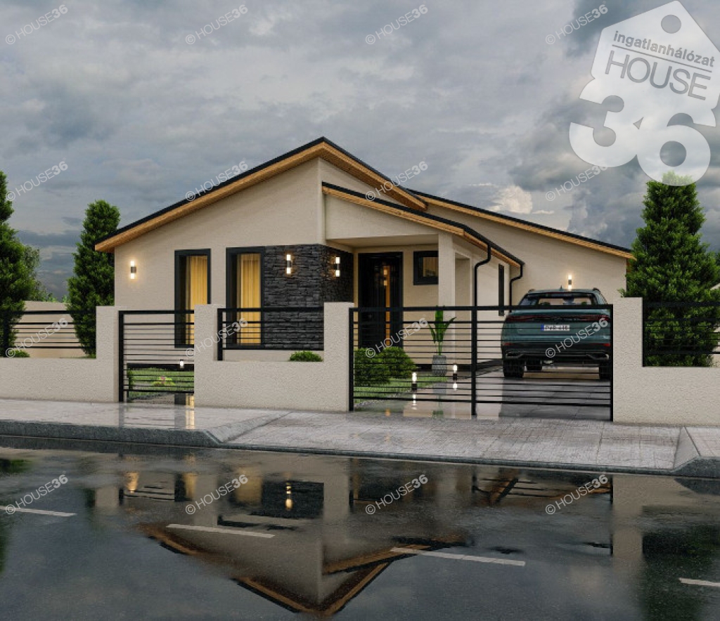 Nappali + 3 szoba, fürdő, és 16 m2 carportot is tartalmaz, nettó 90 m2.
