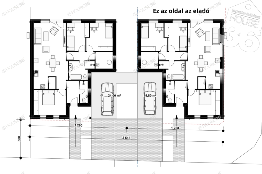 400 m2-es telekre egy 90 m2-es prémium minőségű ikerházat terveztek.