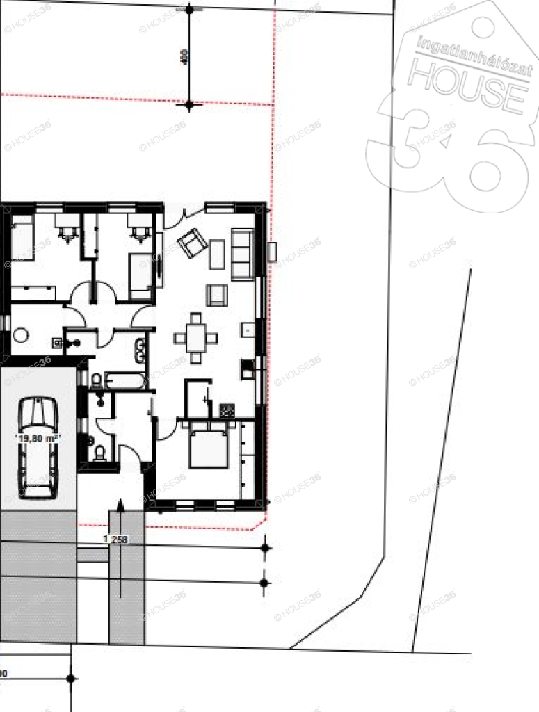 Nappali + 2 szoba, fürdő, és 16 m2 carportot is tartalmaz, nettó 90 m2.