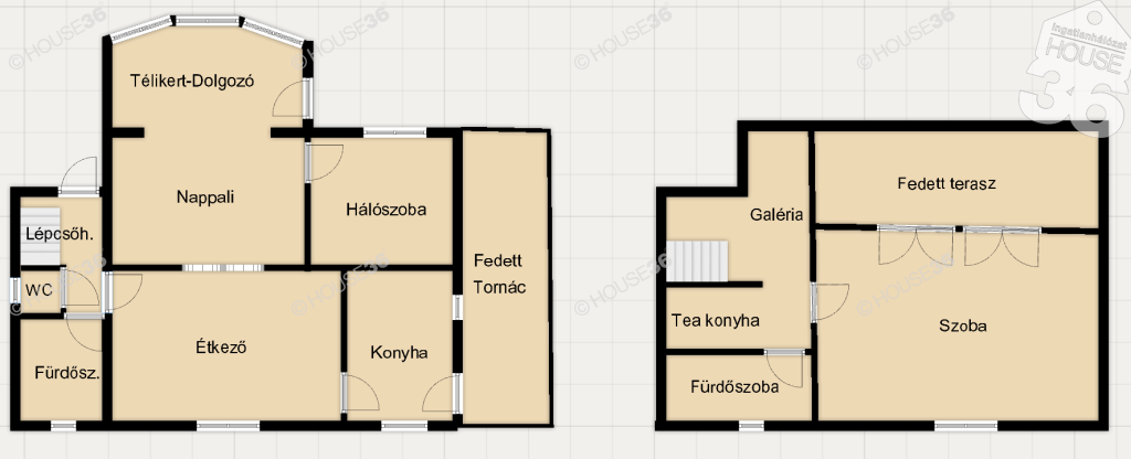 A földszinten tágas konyha és étkező, az emeleten teakonyha, így az alsó és felső szint akár külön lakrészként is használható - külön bejárat is biztosított.