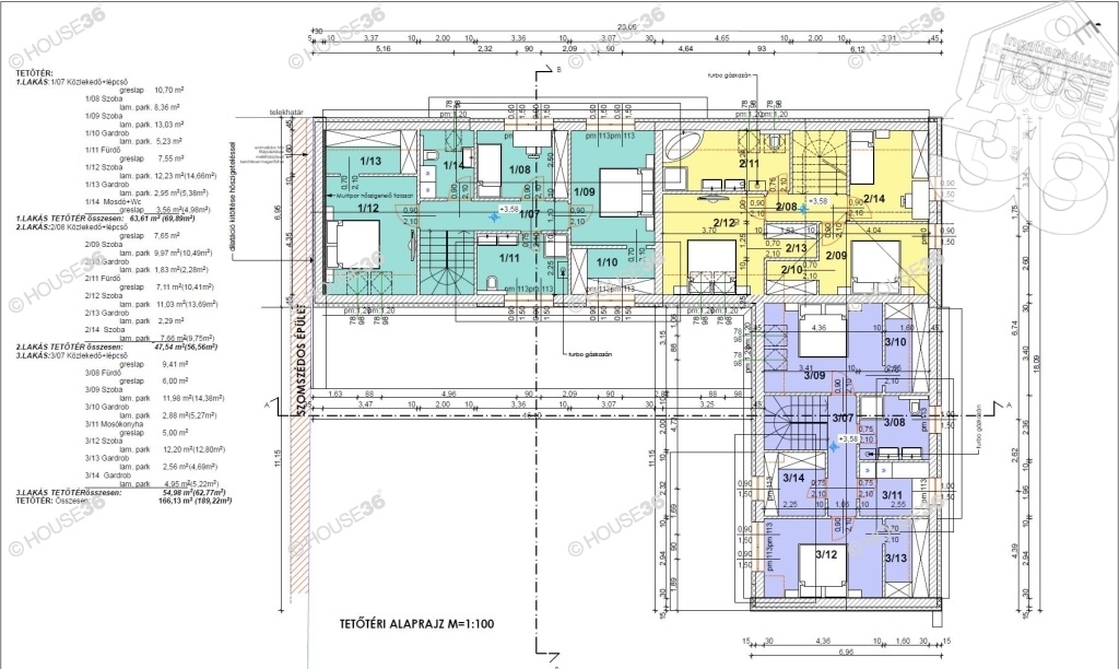3.sz. lakás főbb jellemzők: (alaprajzon lila színnel jelölve)