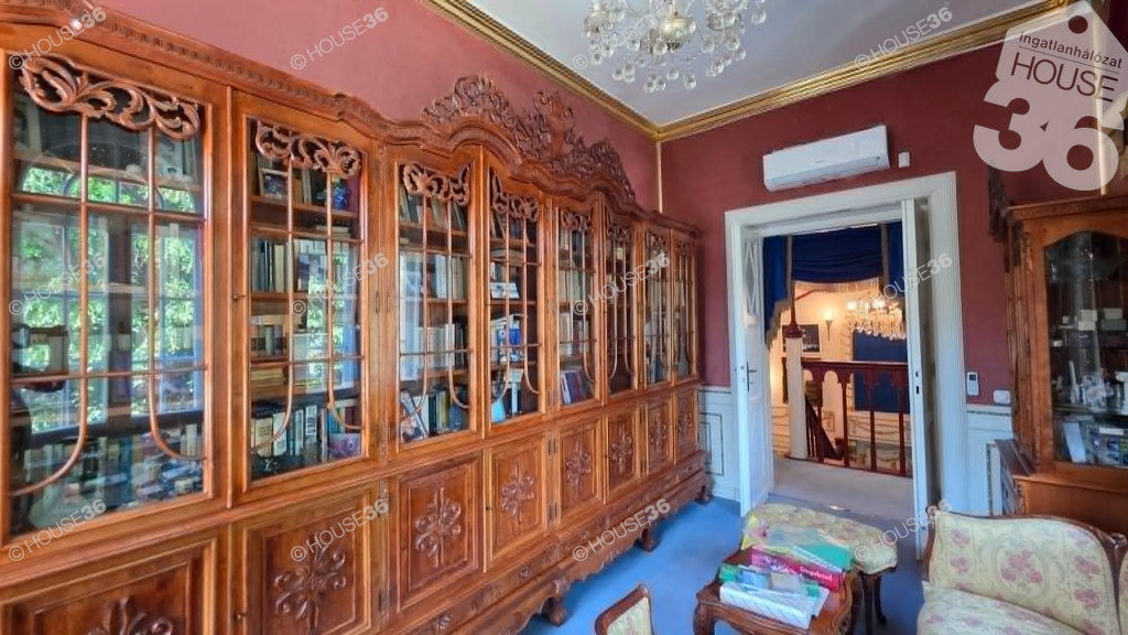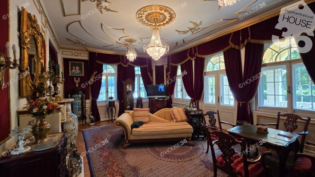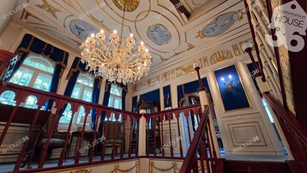 Az ingatlan gazdagon díszített egyedi bútorzattal, berendezési tárgyakkal, festményekkel együtt eladó. A külön rendelésre, mahagóni fából, kézzel készített egyedi bútorok benne vannak a vételárban.