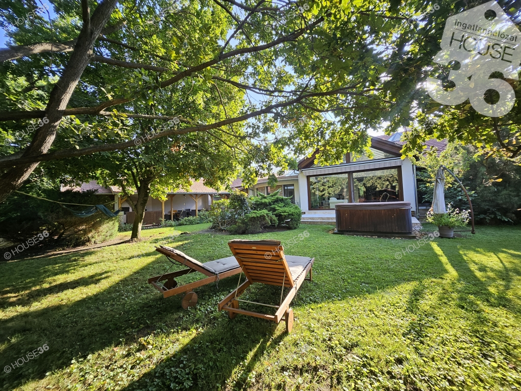 Vacsiközben, 1166 m2-es dupla telken, kb.300 m2-es, tetőtér beépítéses, 2 nappali + 5 szoba + 2 fürdőszobás, igényesen berendezett és nívós anyagokból épült (mészkő, extra szigetelés), minden igényt-és extrát kielégítő luxus családi ház eladó!