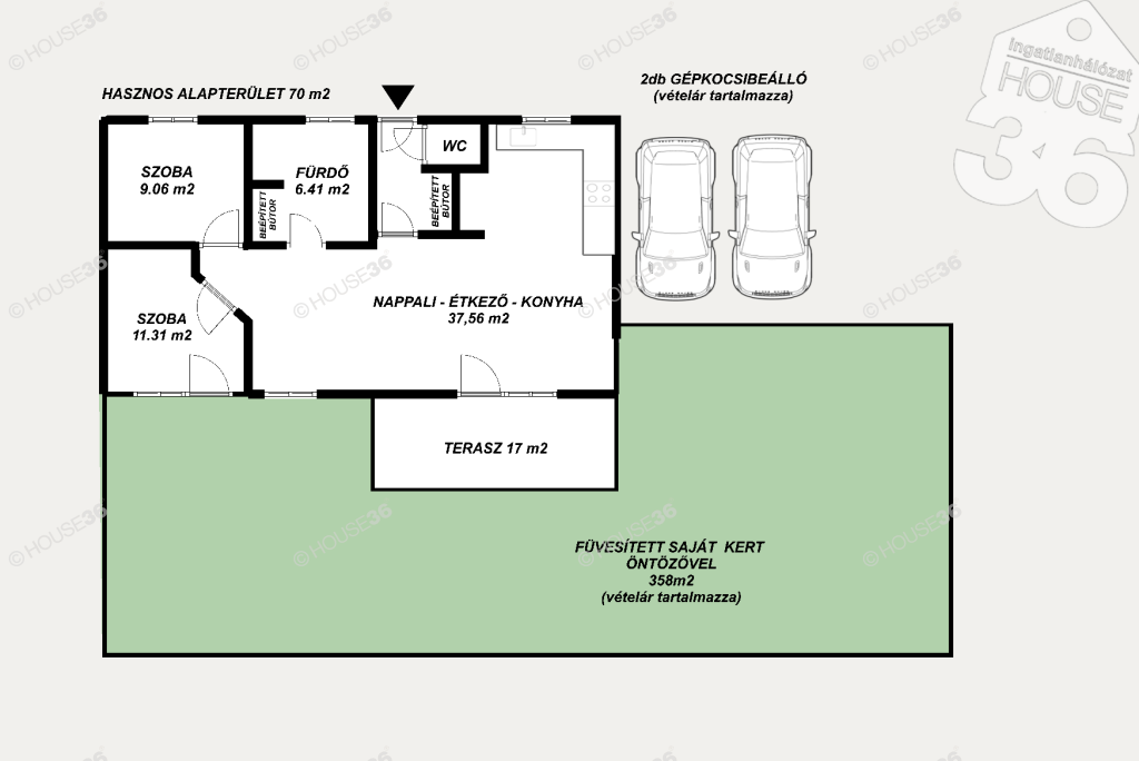 - 2db szilárd burkolattal parkoló