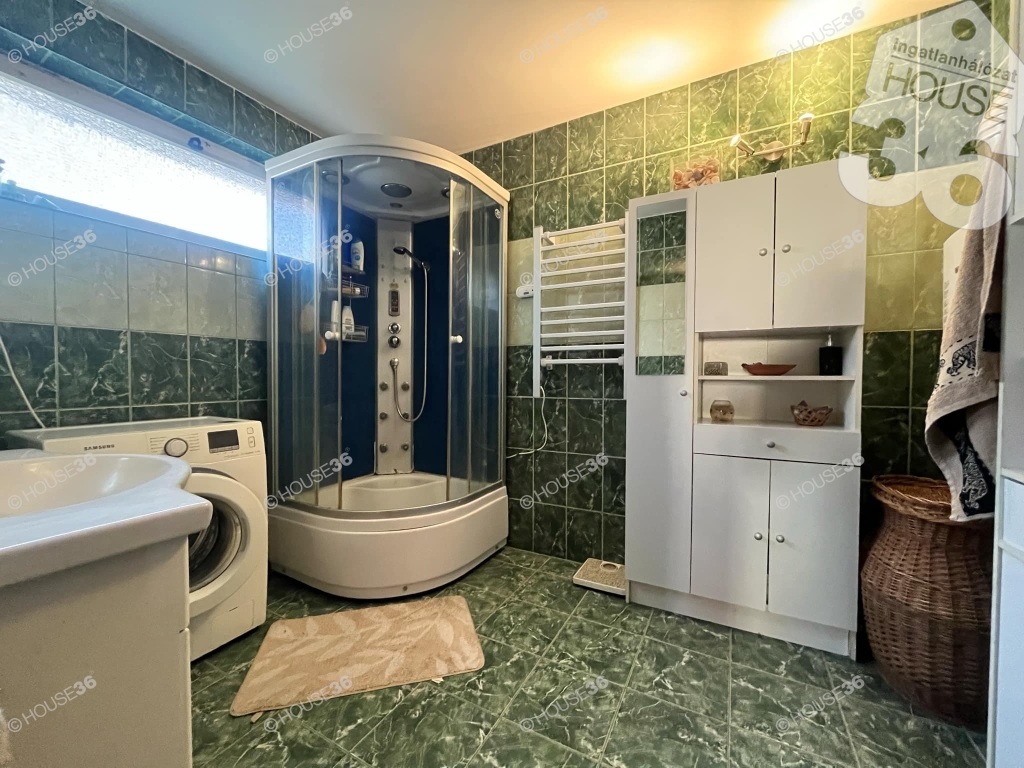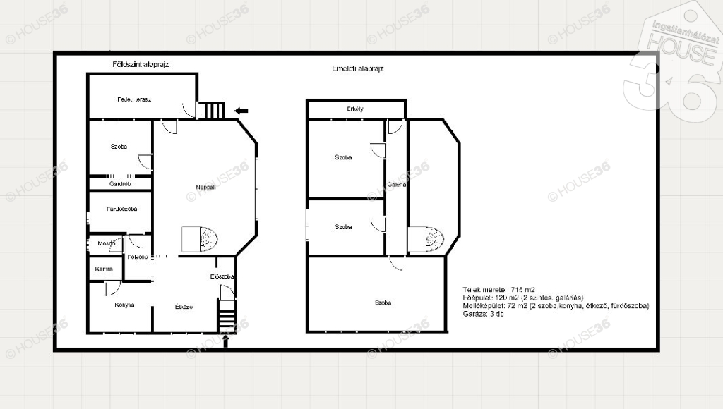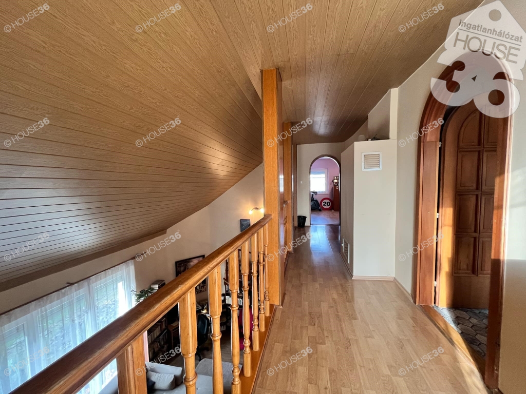 - Főépület (120 m2): nappali+4 szoba, étkező-konyha, kamra, 2 fürdőszoba, fedett terasz (20 m2) és erkély (5 m2)