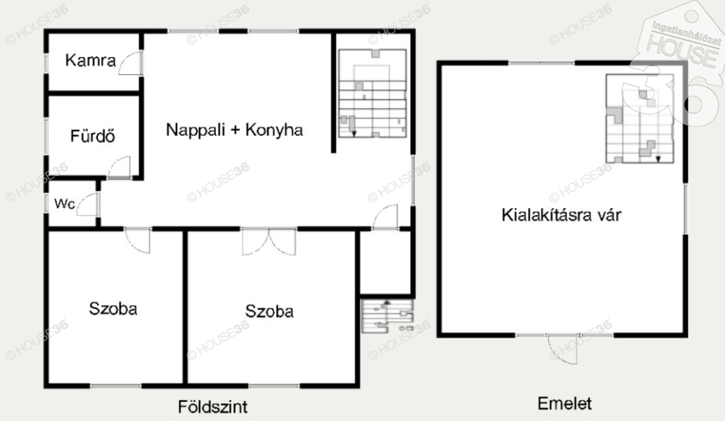 - eredeti terveken az emeleten 2 szoba, fürdő és előtér kapott helyet
