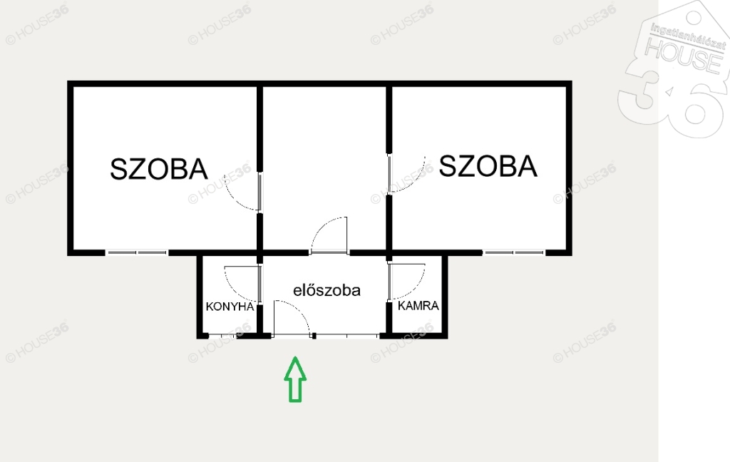 • 50 m2, két szoba+konyha+kamra+előszoba. Fürdőszoba nincsen.