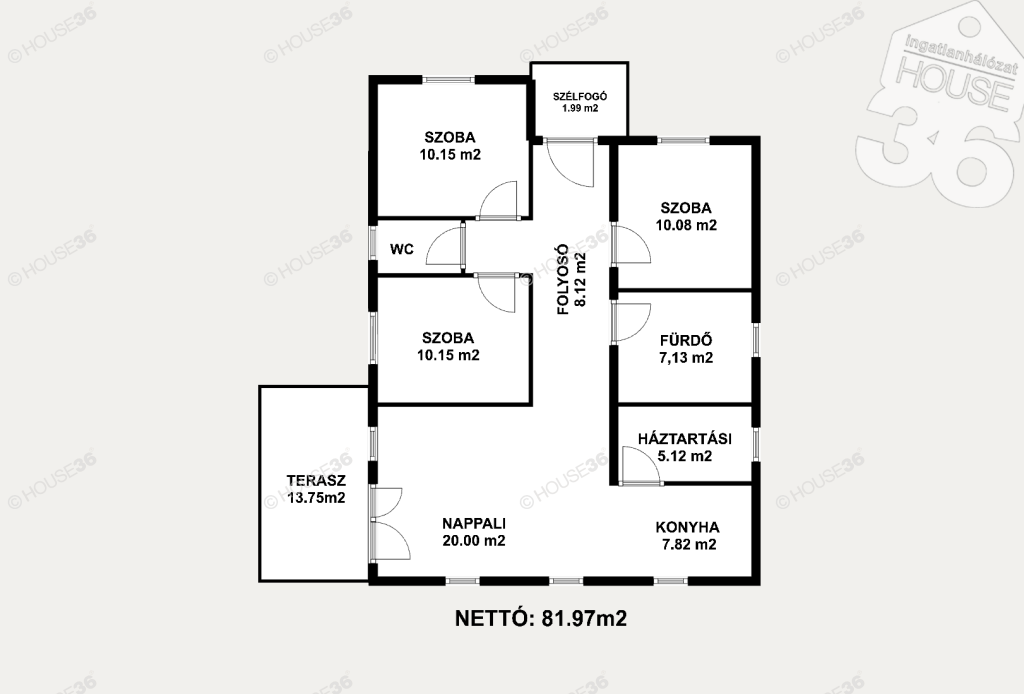 - Nappali + 3 hálószoba