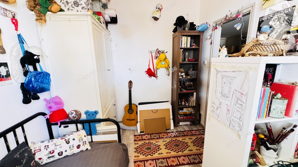 A lakásban hideg- és meleg burkolatok váltakoznak, a fa nyílászárókat redőny egészíti ki.