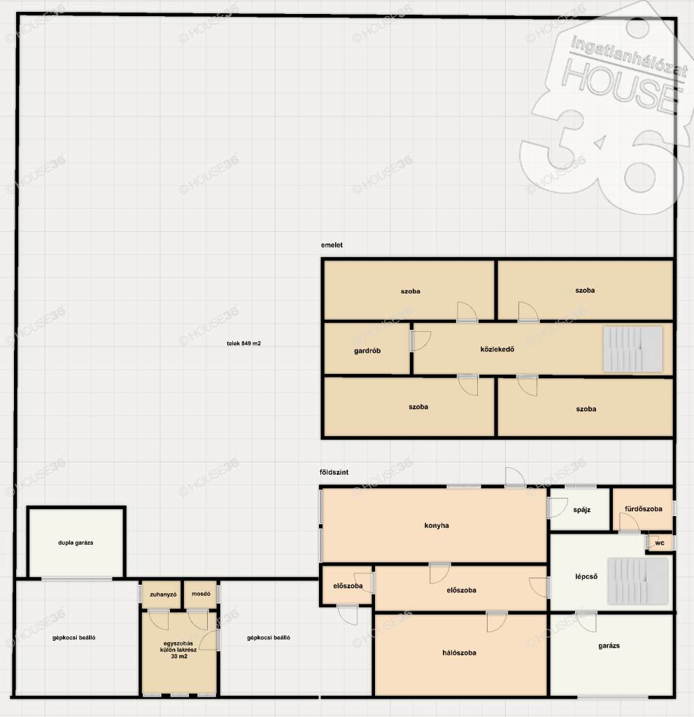 Az ingatlan tágas szobákkal és kivételesen nagy kerttel rendelkezik.A telek 849 m2.