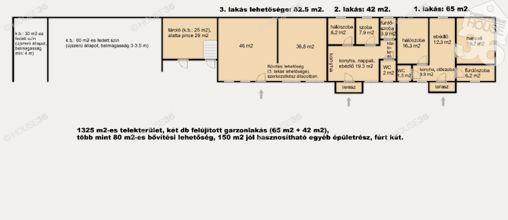 - Bővítési lehetőség k.b: 80 m2. (szerkezetileg kialakított helyiség).
