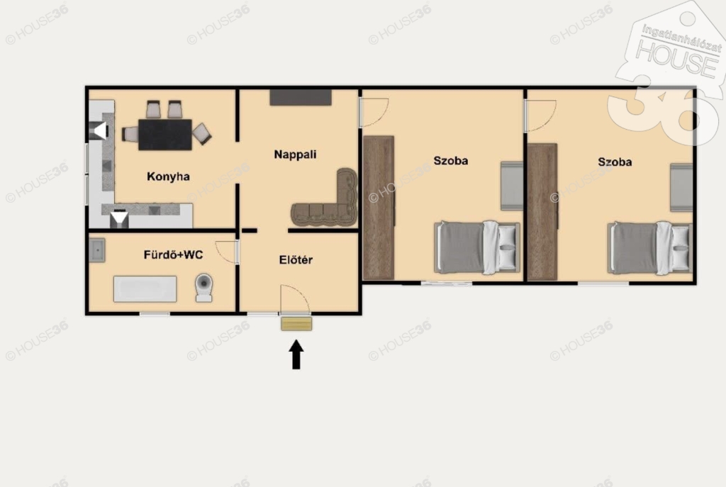 nappali + 2 szoba található 74 m2-en, ideális kis családnak vagy pároknak.