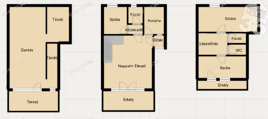 - Földszinten fürdőszoba, emeleten zuhanyzó + külön WC