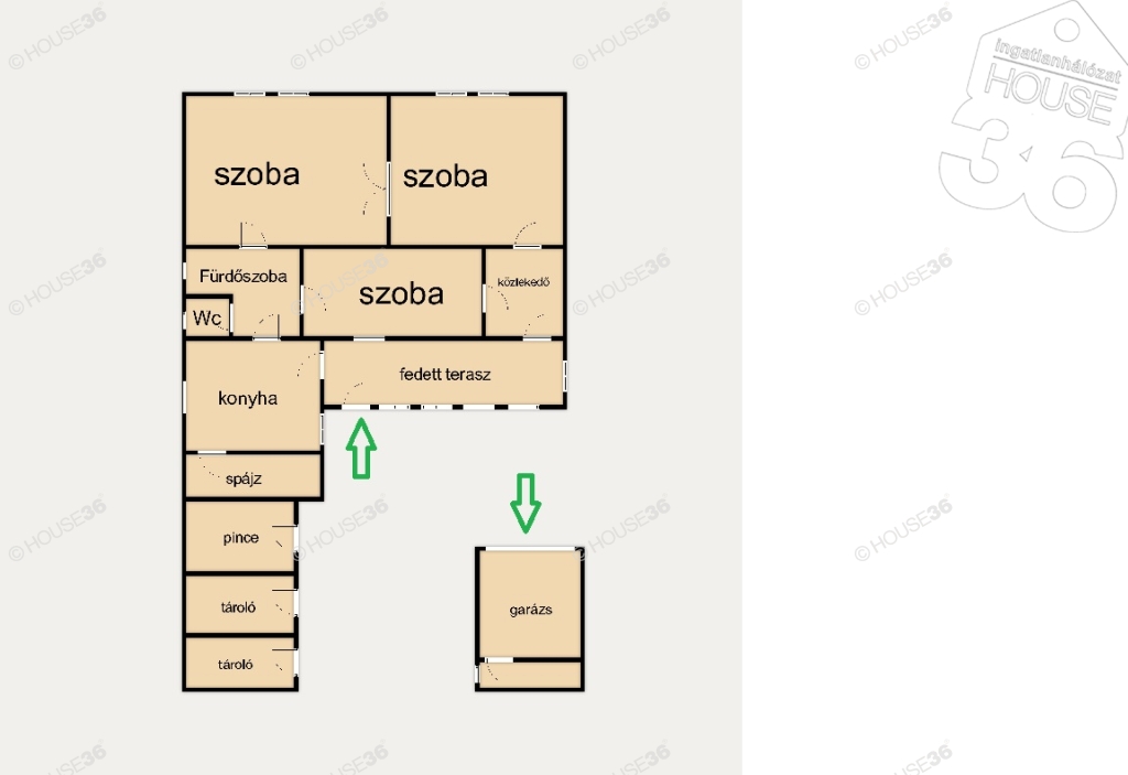 - nagyméretű garázs, elkülönített öltözővel