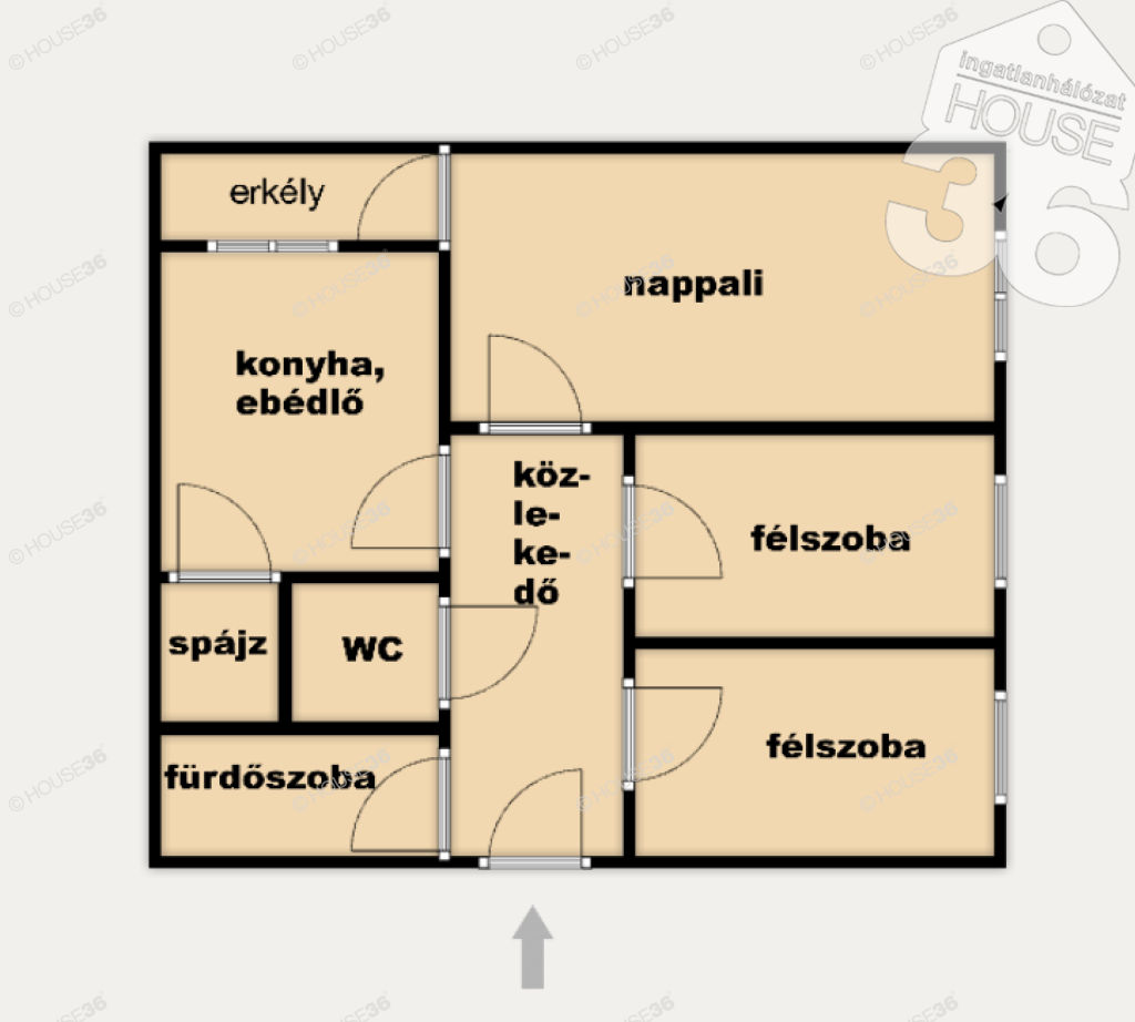 - Tégla falazatú, 54 m2-es, 1+2 félszobás, erkélyes, 3. emeleti lakás.