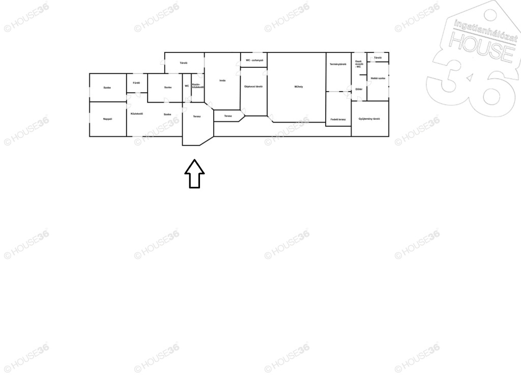 -Előszoba, nappali, hálószoba, konyha+spájz, fürdőszoba+WC, terasz