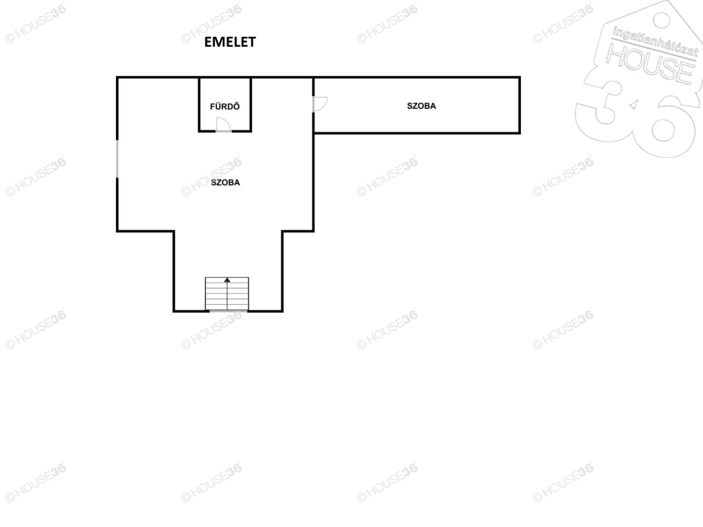 -Emelet: nappali, fürdőszoba+WC, gardróbszoba, padlástér