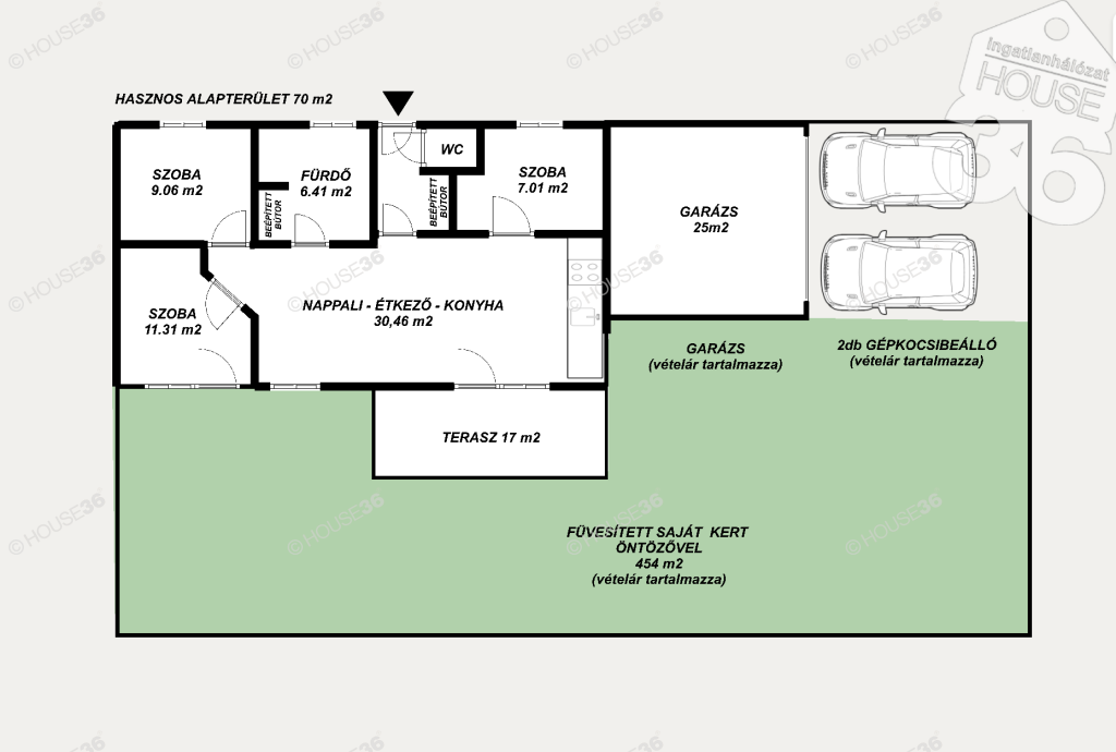 - Parkosított (füvesített) saját udvar automata öntözővel