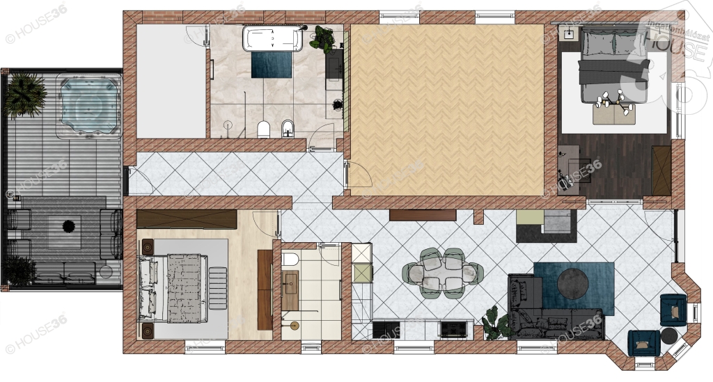 Az elképzeléseket segíti egy profi lakberendező által megálmodott modern látványterv, melyet a tulajdonos a vásárló rendelkezésére bocsát.