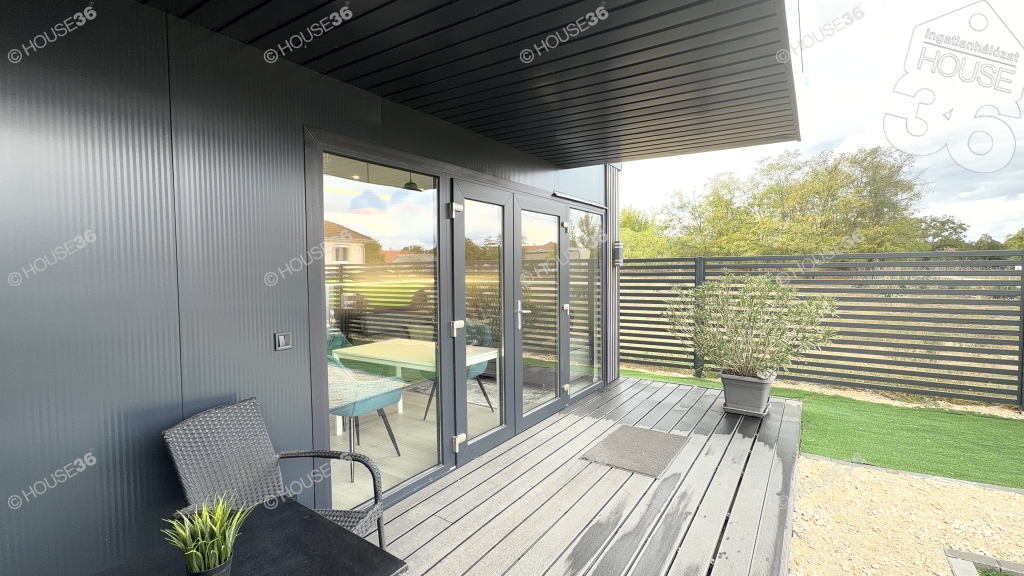 Összközműves, azonnal költözhető. A kivitelezés szép, igényes, minden részletre kiterjedő tervdokumentációval. A helyiségek klímatizáltak. Tartozik hozzá egy 14 m²-es fedett terasz is.
