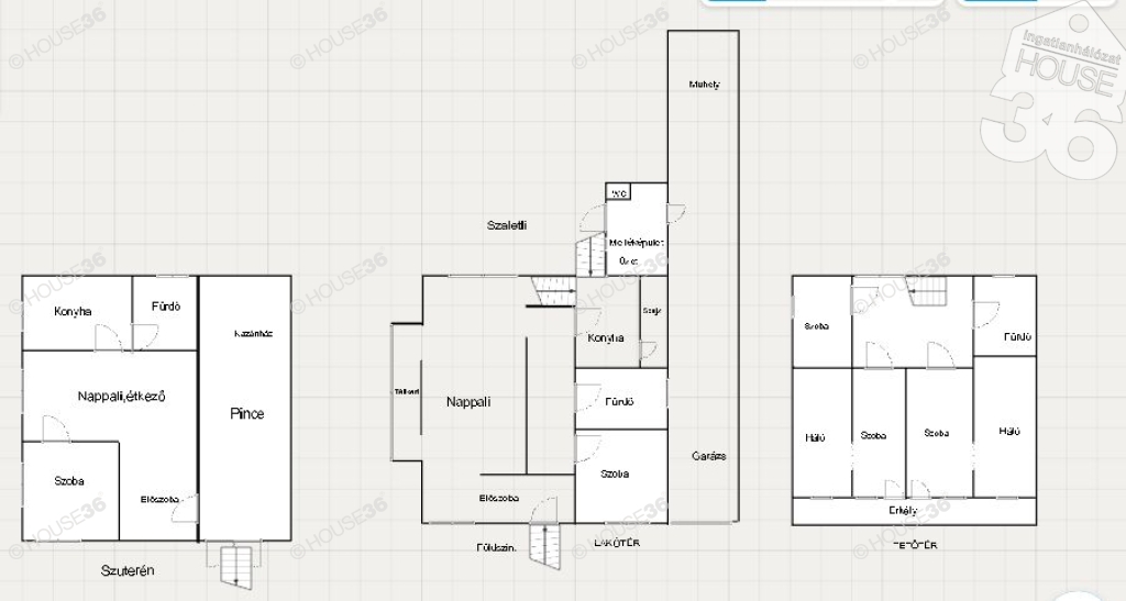-A tetőtérben 5 szoba ahol praktikusan a tanuló szobából nyílik a hálószoba.