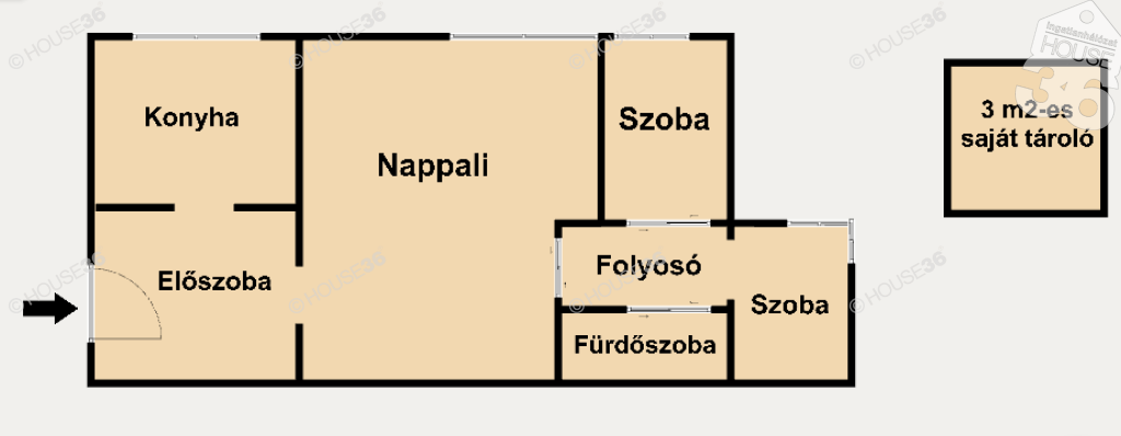 - Nappali + 2 félszoba,