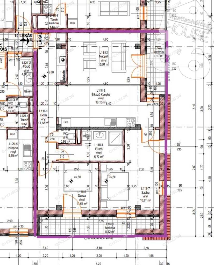 • Szobákban laminált parketta, egyéb helyiségekben vinyl illetve hidegburkolat.