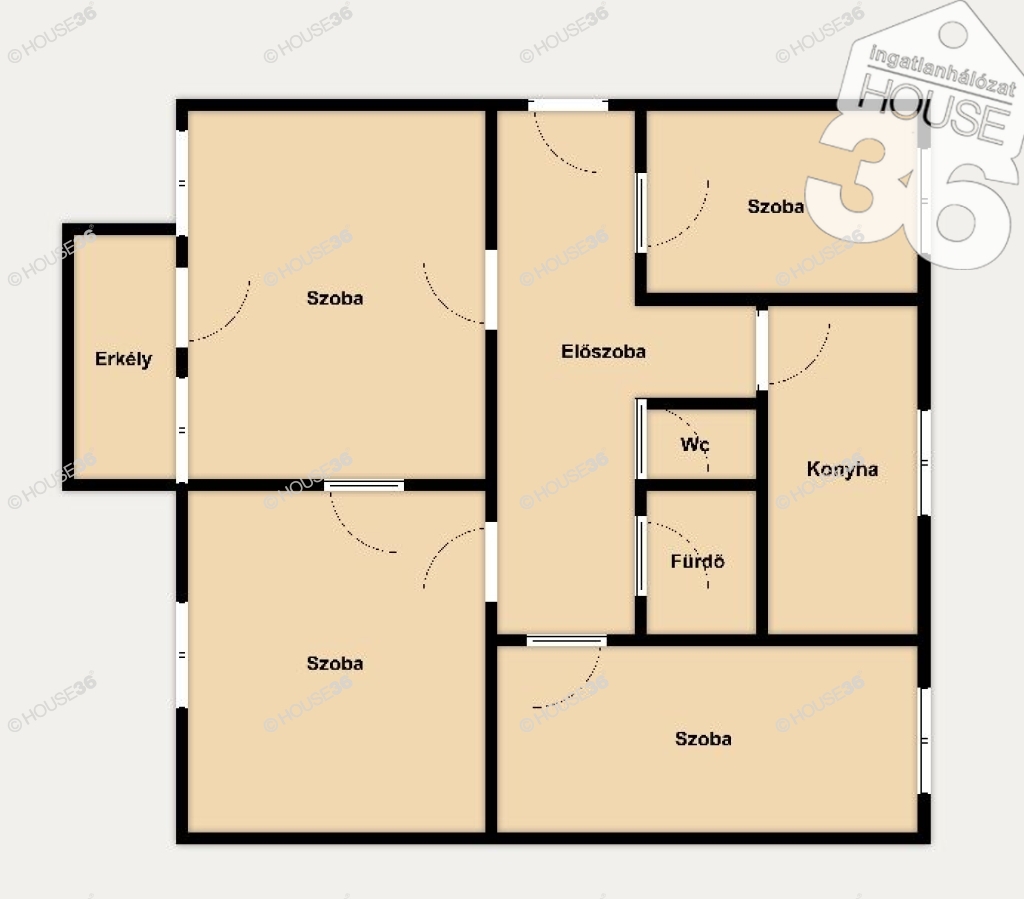 4 külön nyíló szoba