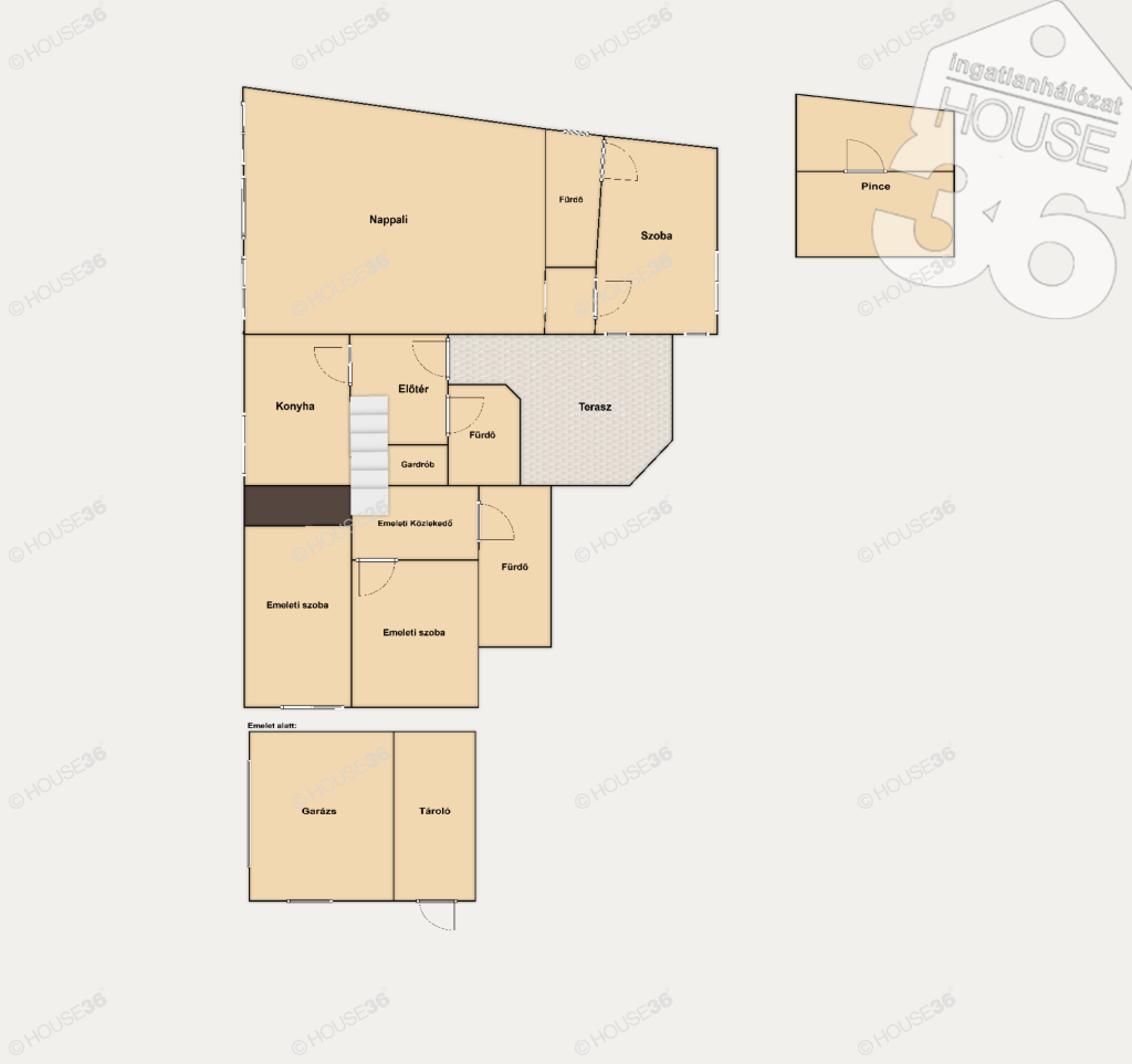 A mindennapi kényelmet tovább növeli a garázs, a kocsibeálló és a pince, amely kiváló tárolásra. A terasz pedig tökéletes helye lehet a nyári reggeliknek vagy esti beszélgetéseknek.