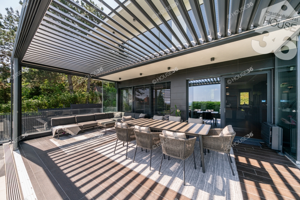 -Pergolával ellátott eltolható üveges terasz 50 m2.