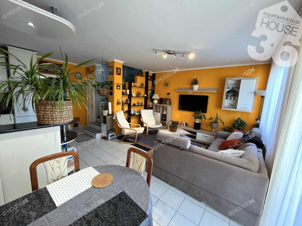 A modern, 2003-ban épült 100 m²-es, 3 szintes, tetőtér beépítéses sorház 2013-ban esztétikailag és műszakilag is megújult.