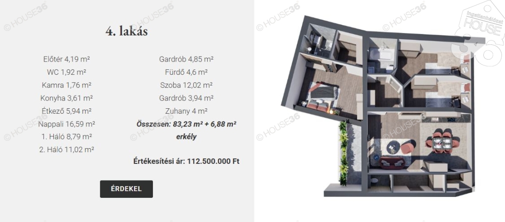2 lakás kivételével mindegyik erkélyes, vagy teraszos és nappali + 2-3 szobásak.