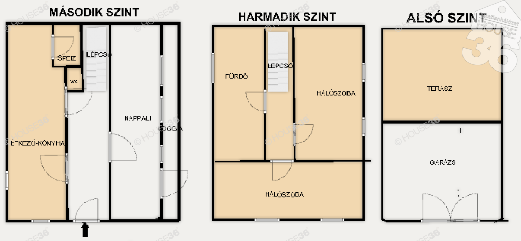 - alsó szinten nappali + étkezős konyha, wc, az emeleten 2 háló és fürdőszoba