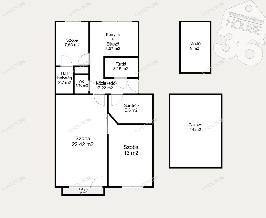 - 9 m²-es saját tároló: 2.000.000 Ft