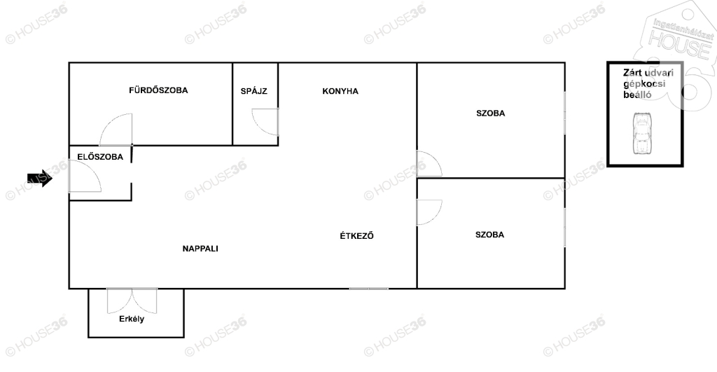 zárt udvari gépkocsi beálló, amelyet az ár tartalmaz!