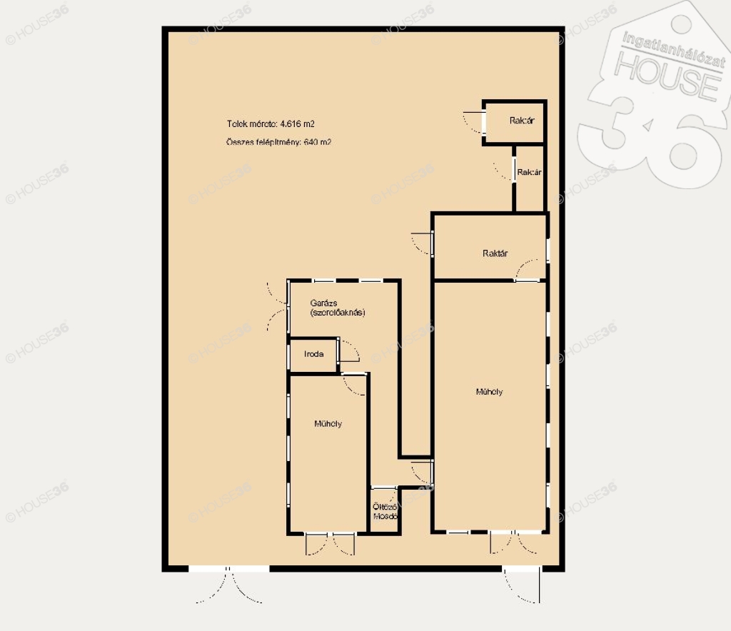 - Összes felépítmény: 640 m2