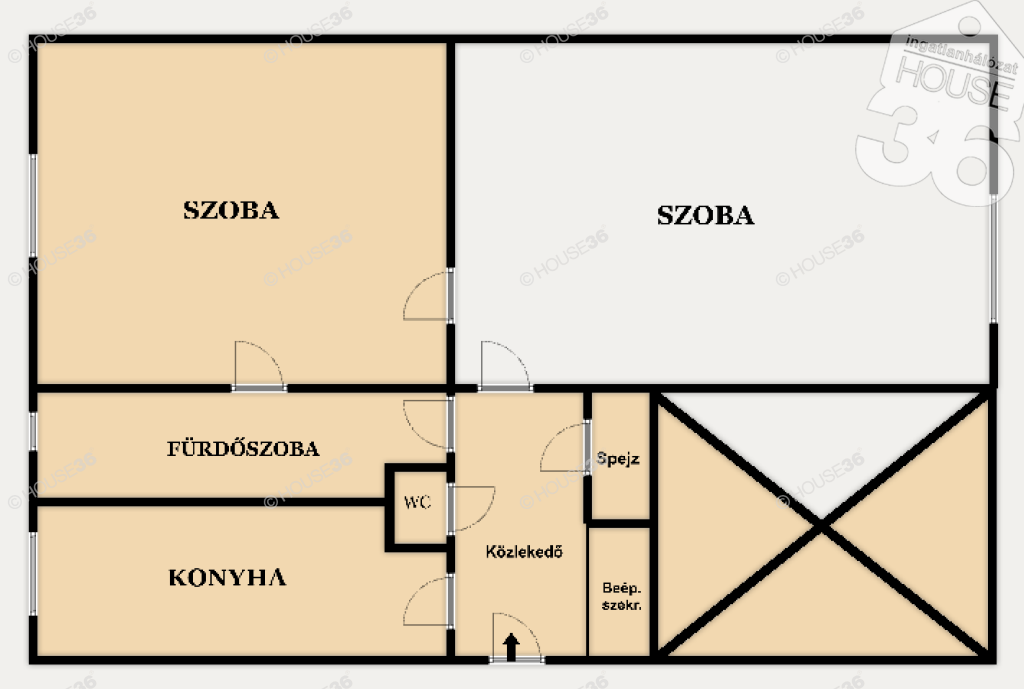 Alapterület: 57 m2 (nappali + hálószoba).