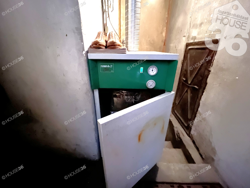 A házban 3 szoba és 2 félszoba található. Az alsó szinten WC és zuhanyzó, az emeleten külön WC és kádas fürdőszoba került kialakításra. A burkolatok csempe és parketta. A fűtést gáz cirkó biztosítja radiátorokon keresztül, emellett vegyes tüzelésű kazán is rendelkezésre áll.