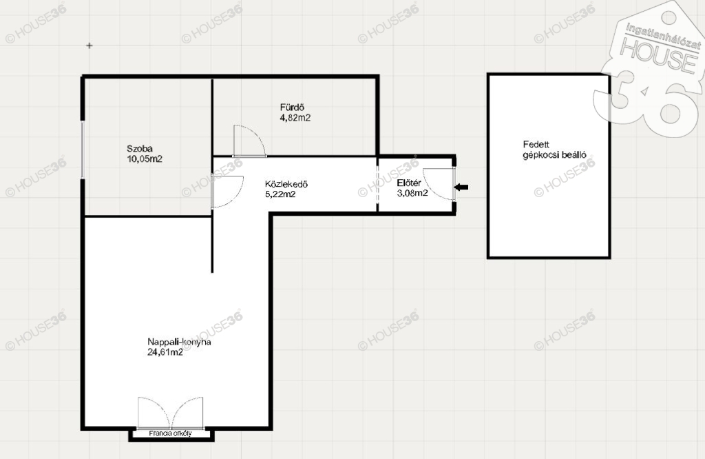 - Amerikai konyhás nappali + 1 szoba