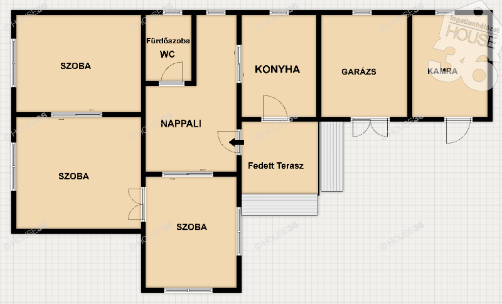 • Elosztás: 3 hálószoba + tágas nappali (amerikai konyha kialakítására is alkalmas).
