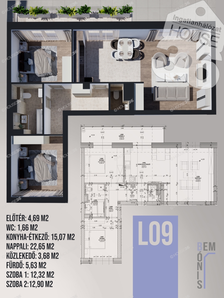 12,58 m²-es erkély tartozik, amely tágasabbá és még vonzóbbá teszi az ingatlant. A terek elosztása biztosítja a privát szférát, miközben a közösségi helyiségek a családi és baráti együttlétekre hívogatnak.