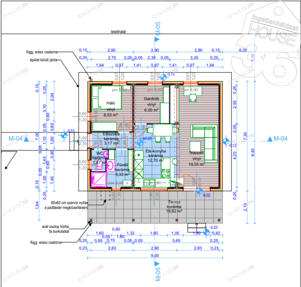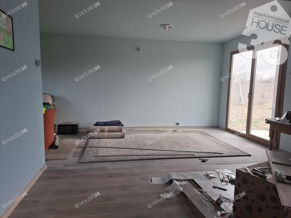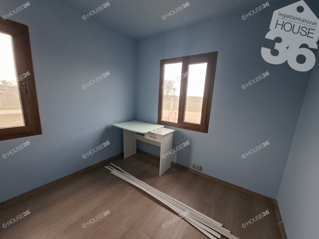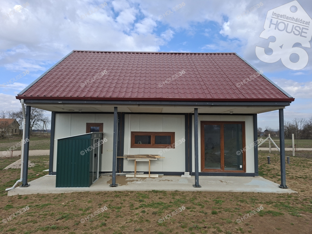 54 m2-es, 2 és fél szobás, könnyűszerkezetes, befejezésre váró ház,