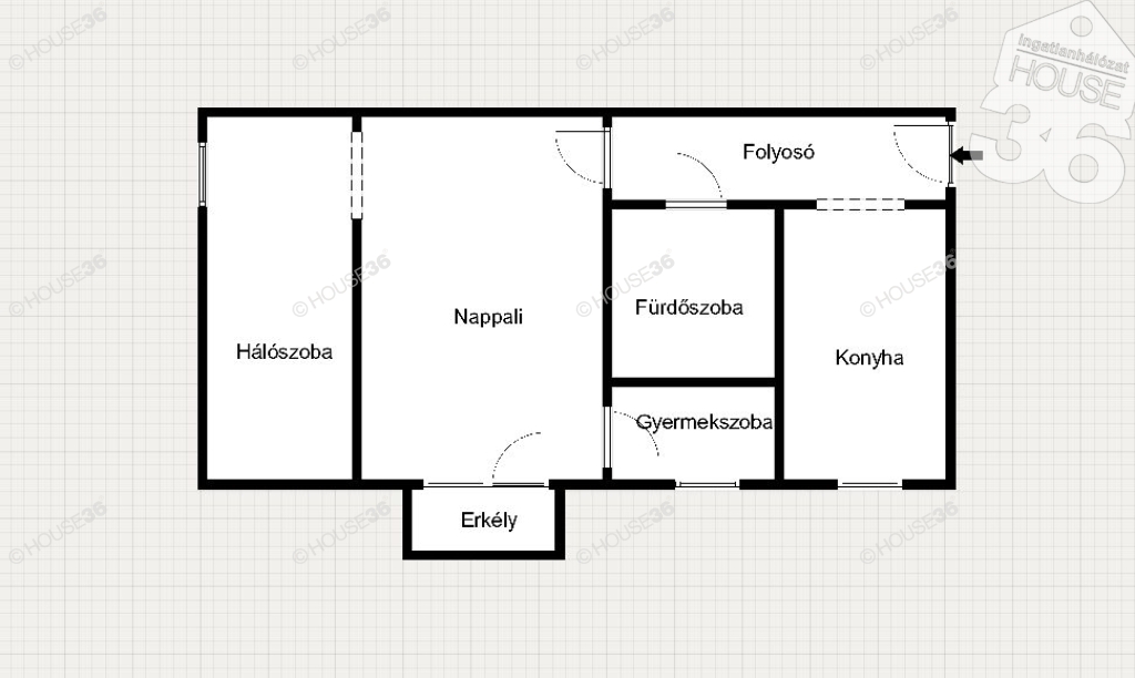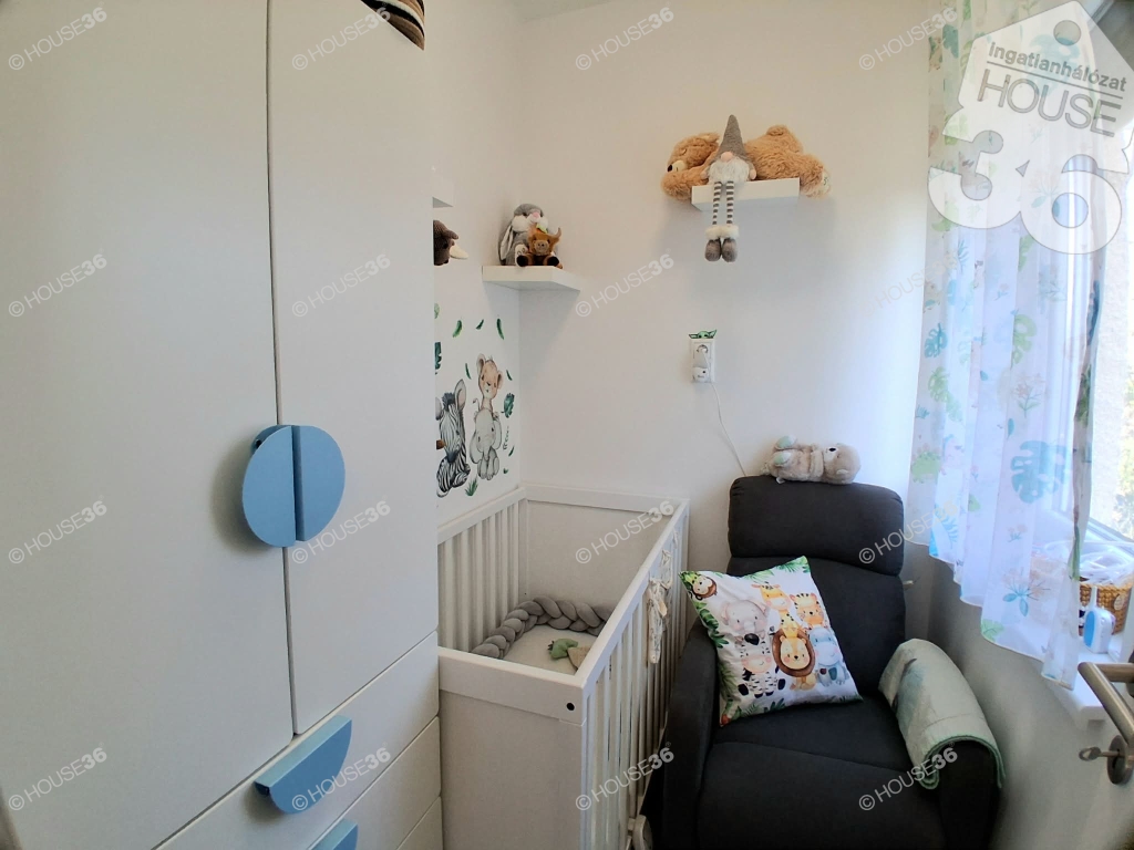 - Helyiségek: Konyha, nappali, hálószoba, gyermekszoba (gardrób), fürdőszoba