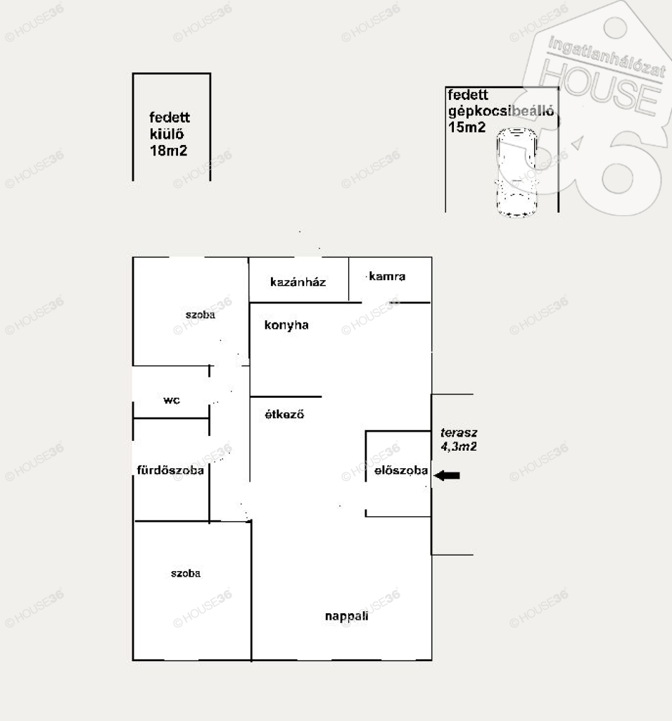 - Nappali + étkező + konyha + kamra 2 nagy hálószoba Fürdő + külön WC