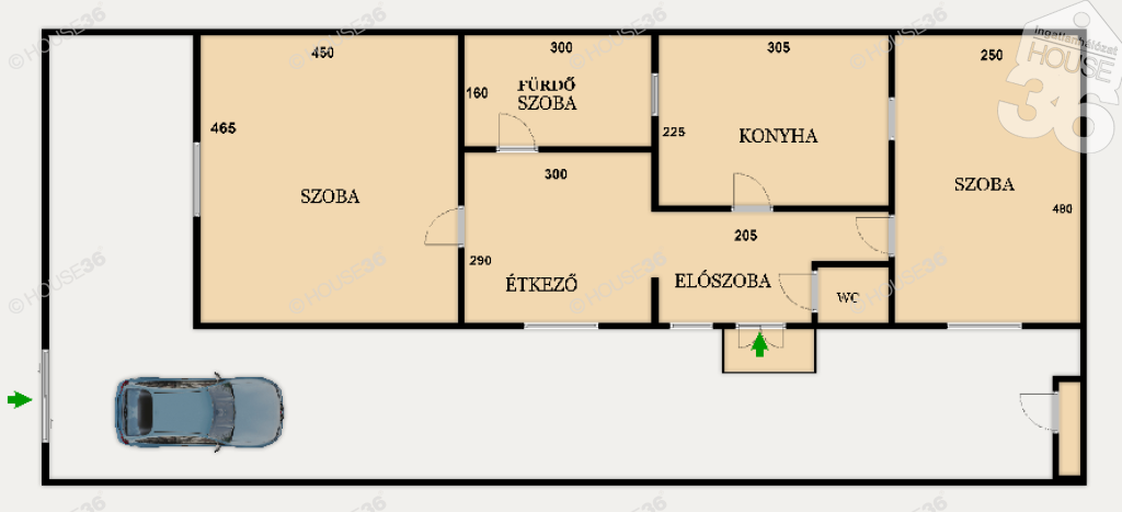 Elosztás: Előszoba, 2 tágas szoba, konyha + étkező, fürdőszoba, külön WC.