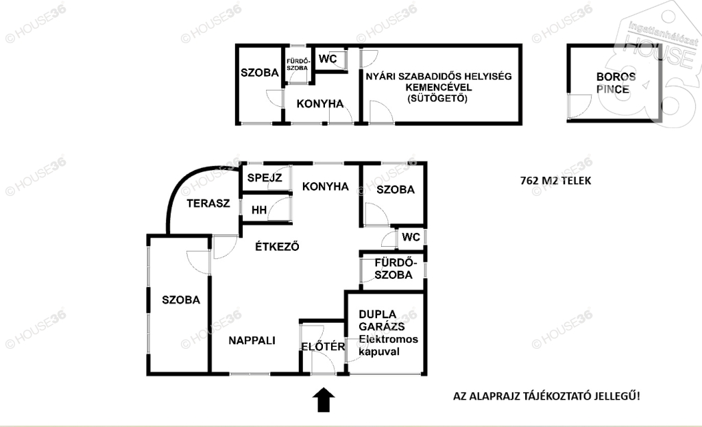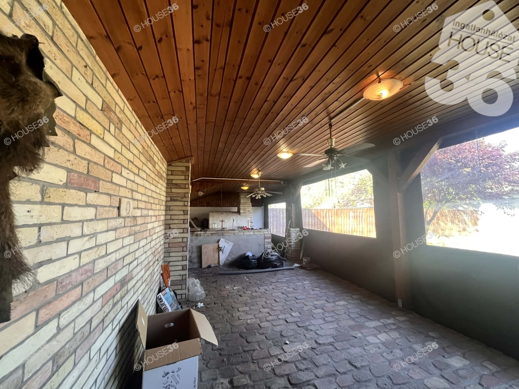 Kecskeméten eladó egy 762 m²-es telken elhelyezkedő, szigetelt, téglaépítésű, 89 m²-es családi ház dupla garázzsal elektromos kapuval, gázcirkó fűtéssel és kandallóval, Dufa fa nyílászárókkal szúnyoghálóval, nappali + 2 szobás elrendezéssel, 20 m²-es terasszal, valamint egy különálló, kb. 50 m²-es melléképülettel, amelyben egy szoba-fürdőszobás lakrész és egy kemencével felszerelt nyári sütögető helyiség is kialakításra került, továbbá az ingatlan pincéjében egy kiváló borospince található, így a ház akár vállalkozási célokra is ideális választás lehet.