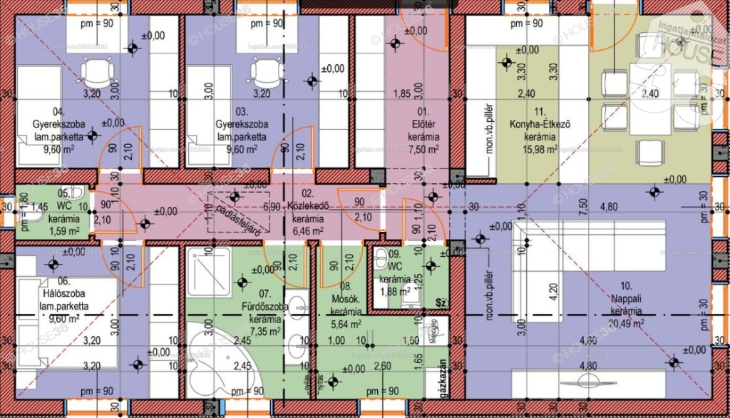 -egyedi gázcirkófűtés, padlófűtés (BOSCH kazán)